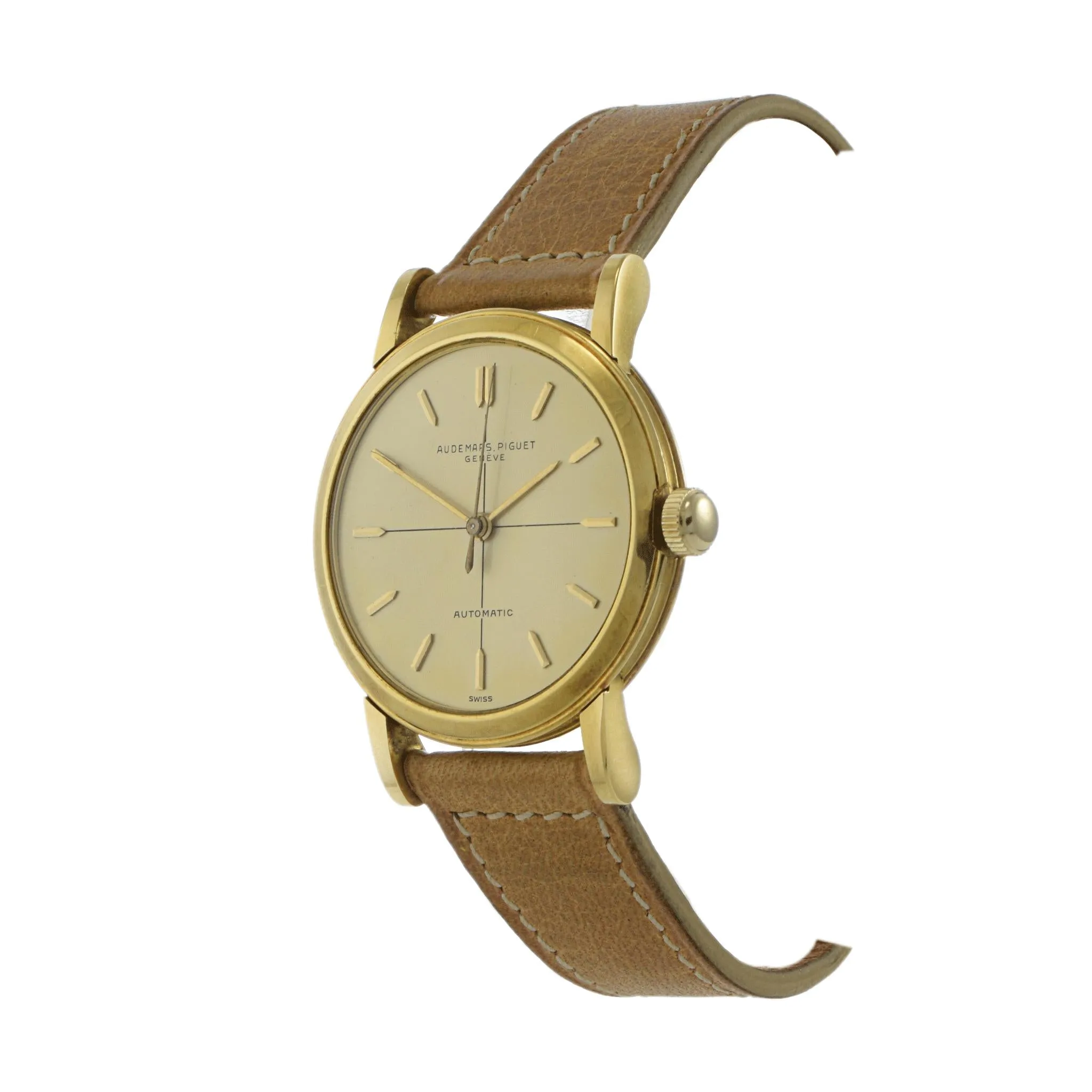 This elegant timepiece by Audemars Piguet is crafted in yellow gold. It features a round watch face with a diameter of 33 mm. The automatic movement ensures precision, complemented by a sleek seconds hand.